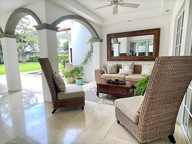 Hermosa Propiedad Lote: 1,000 m2 Construcción: 515 m2 Alquiler: U$7,000 Año de remodelada: 2015 CaracterÃsticas Generales: Primer nivel Sala Comedor Cocina integrada con lÃnea de acero inoxidable Alacena Oficina Terrazas Dormitorio completo Amplio jardÃn Espejo de agua Cochera cerrada para 3 carros Cuarto y baño de servicio Lavanderia Segundo Nivel Sala familiar Dormitorio principal (espectacular) amplio con balcón, baño completo y amplio walk-in closet Dos dormitorios con 1 baño a compartir